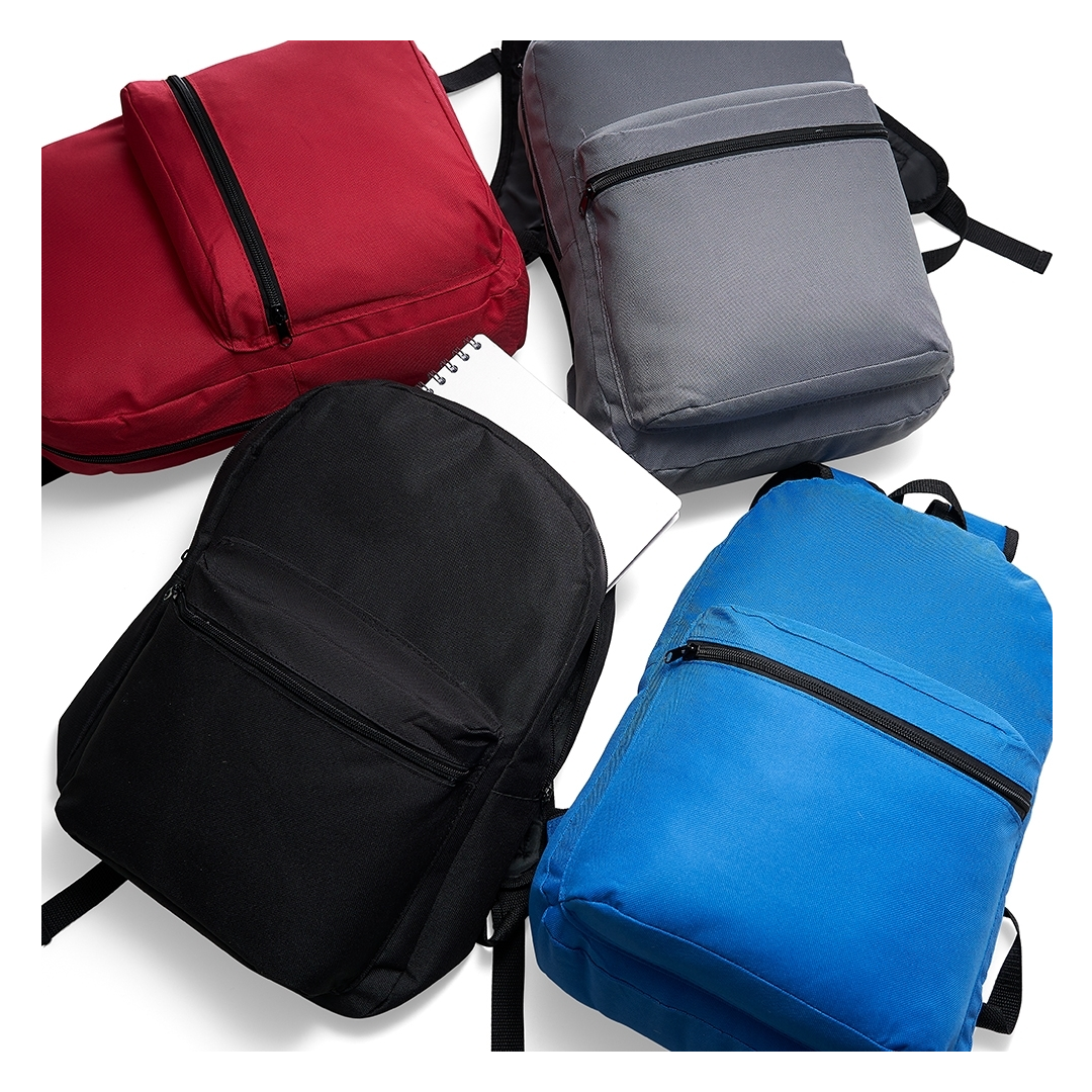 Mochila em nylon 600 17l com dois compartimentos. Medidas aproximadas: 41cm x 28cm x 15cm. Pedido mínimo: 30 unidades -