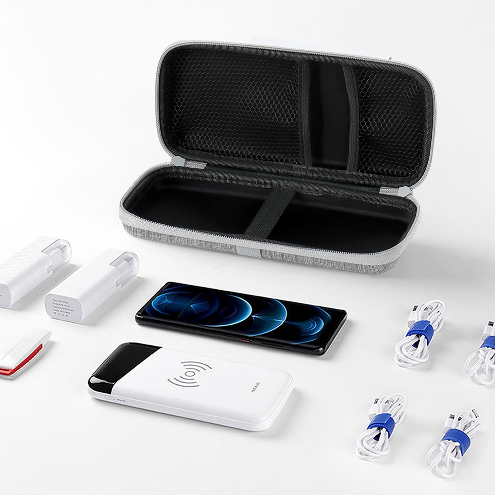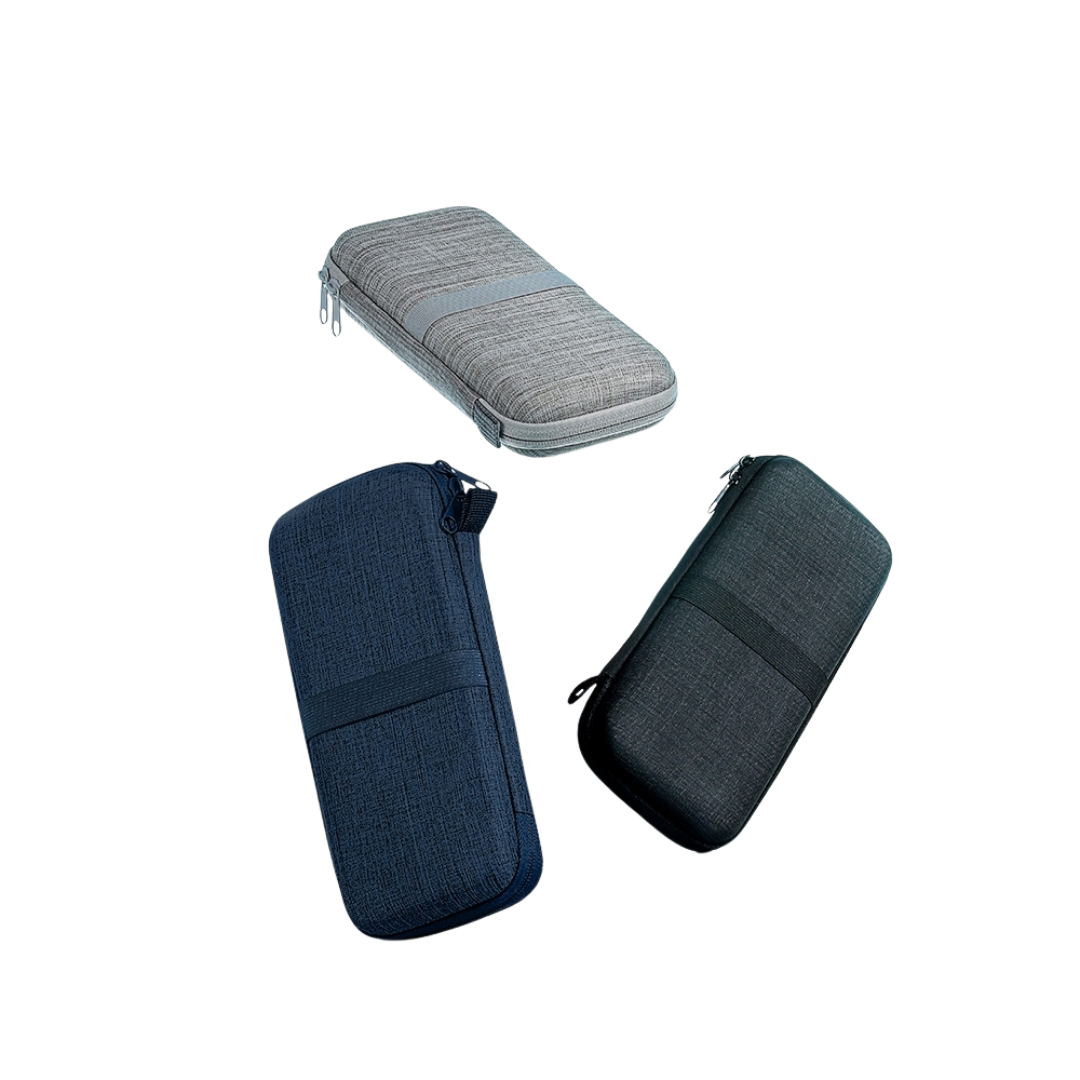 Estojo de proteção para eletrônicos, feito em nylon resistente à água. Contém bolsos telados e elásticos para fixação na área interna e externa. Personalização: silkscreen. Medidas aproximadas: 10,6 cm x 4,6 cm x 23,5 cm. Pedido mínimo: 50 unidades. -