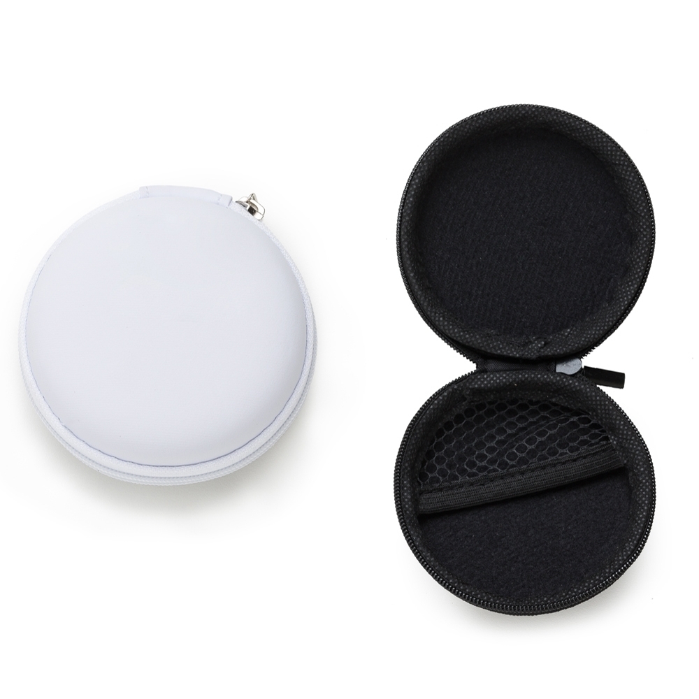 Estojo redondo em material emborrachado alta resistência a quedas, parte interna com redinha, ótimo acessório para colocar fone de ouvido, carregadores, cabos e etc..., costurado com acabamento em zíper. Personalização: silkscreen. Medidas aproximadas: 8,5 cm x 8,5 cm. Pedido mínimo: 50 unidades. -