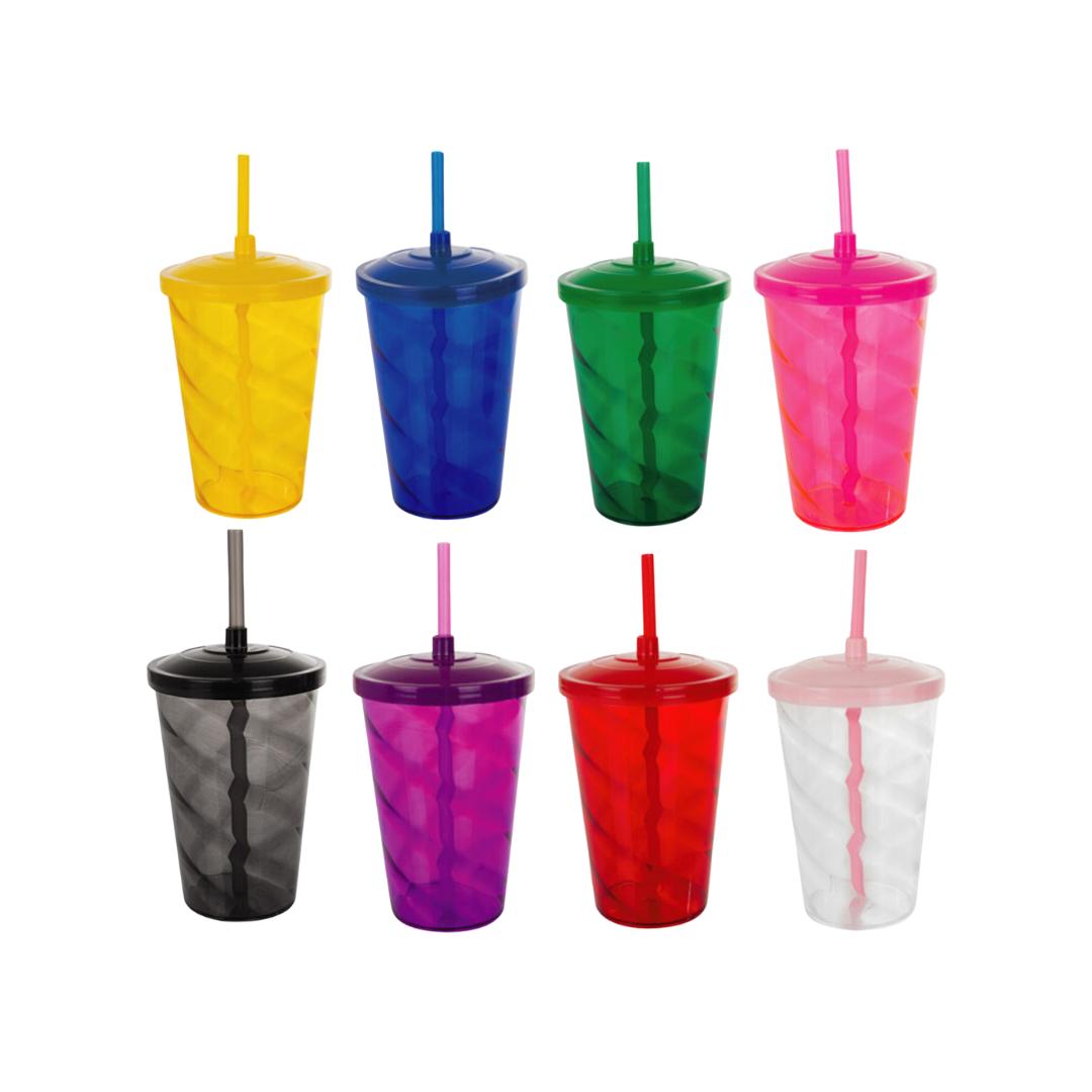 Caneca twister 500ml com tampa e canudo. Medidas aproximadas: 19cm x 24cm. Personalização: silkscreen. Pedido mínimo: 50 unidades. -